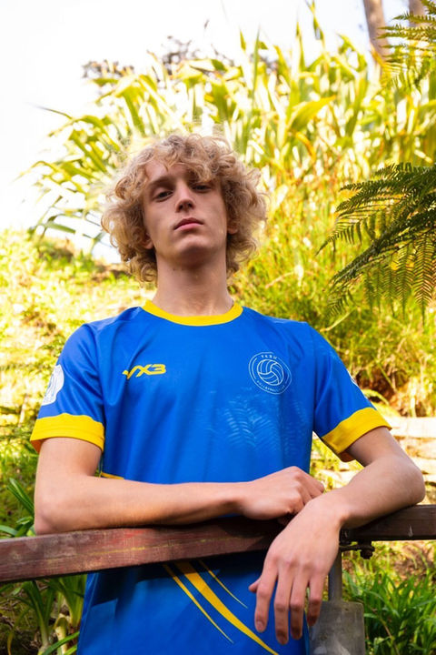 Volleyball kit design for Falmouth Exeter Student Union (FESU) volleyball. Choosing the two colours from both universitys logo branding to create the design and the wave inspired by Cornwall. Photography by Martin Rowe.